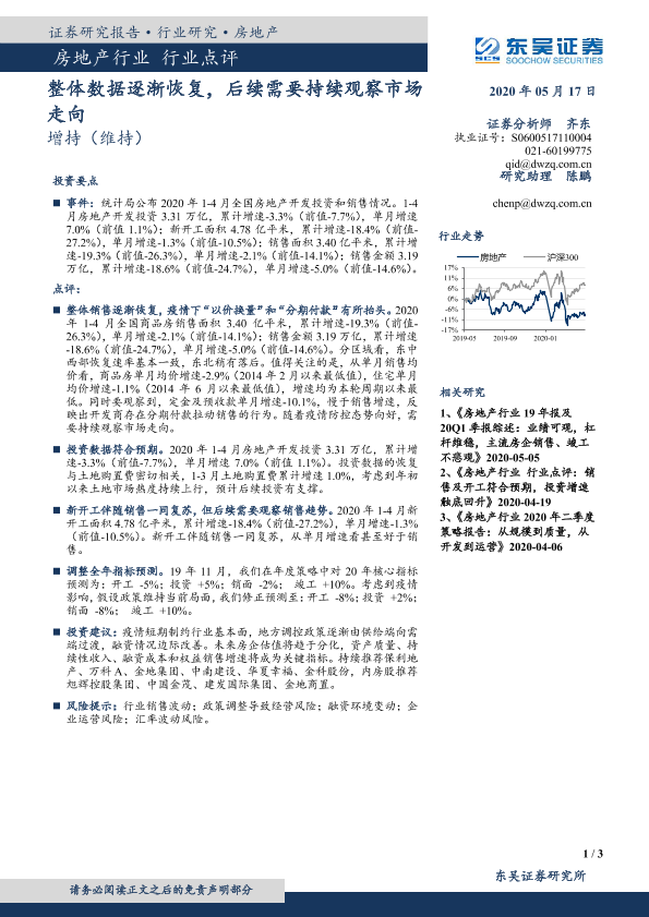 【东吴证券】【20200517】房地产行业点评:整体数据逐渐恢复,后续需要持续观察市场走向-3页