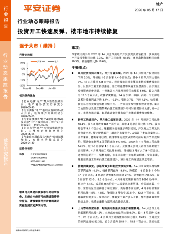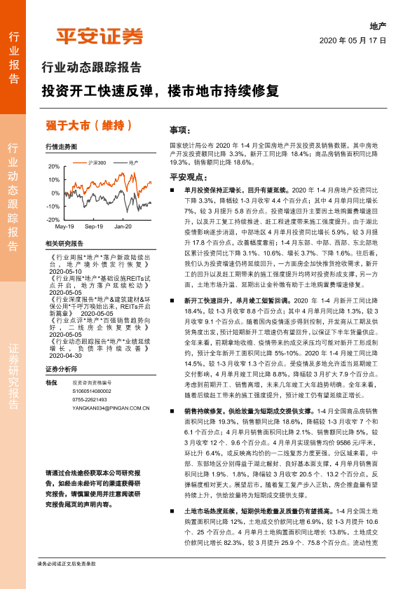 【平安证券】【20200517】地产行业动态跟踪报告:投资开工快速反弹,楼市地市持续修复-16页