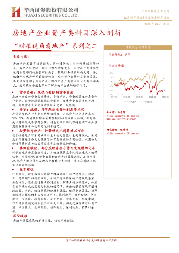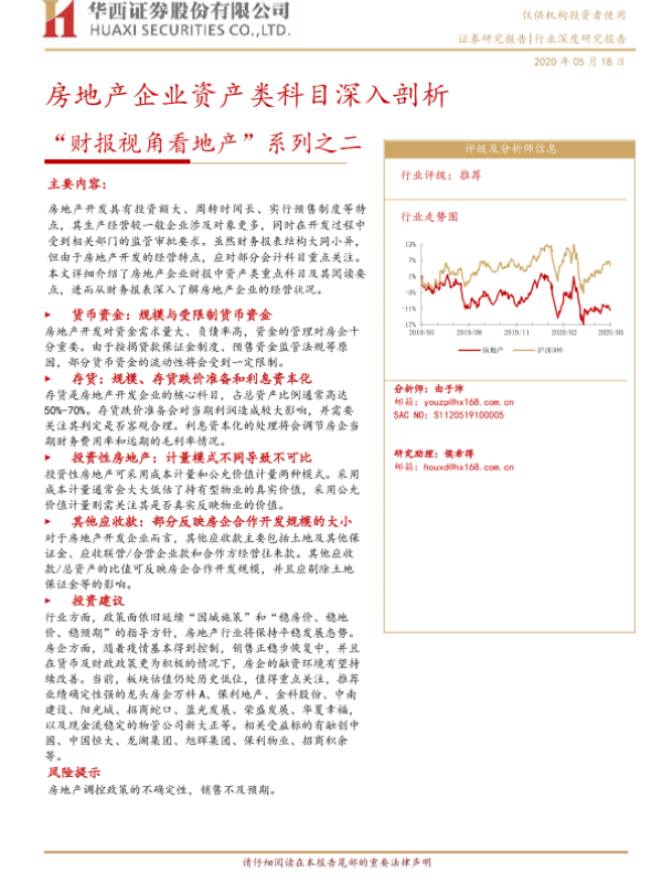 房地产 投资建议 财务分析 资产科目 风险提示