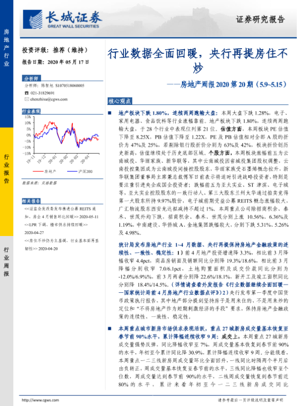 【长城证券】【20200517】行业数据全面回暖,央行再提房住不炒-15页