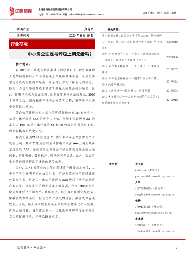 【上海亿翰商务咨询股份有限公司】【20200519】中小房企注定与评级上调无缘吗?-7页