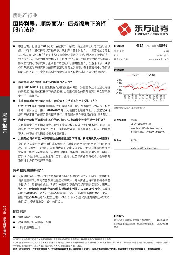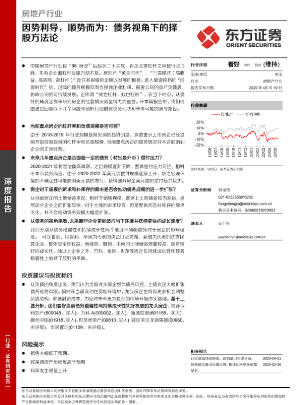 【东方证券】【20200519】房地产行业深度报告:因势利导,顺势而为:债务视角下的择股方法论-20页