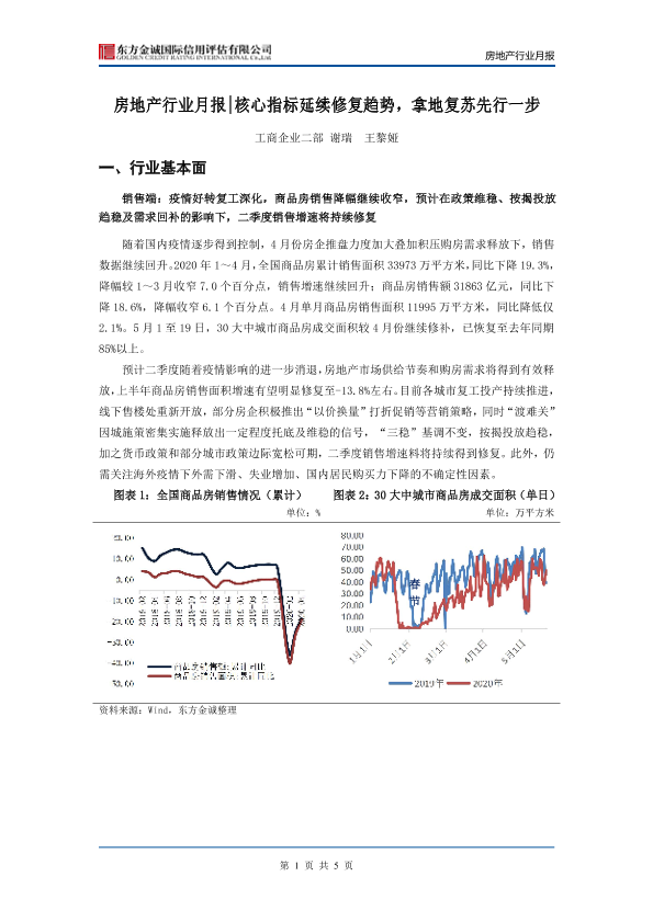 【东方金诚】【20200522】房地产行业月报:核心指标延续修复趋势,拿地复苏先行一步-5页