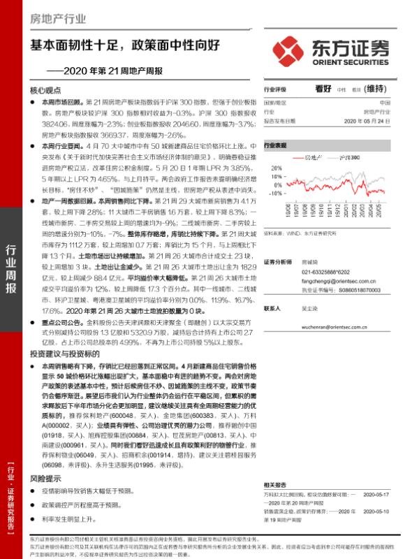 【东方证券】【20200524】2020年第21周地产周报:基本面韧性十足,政策面中性向好-17页