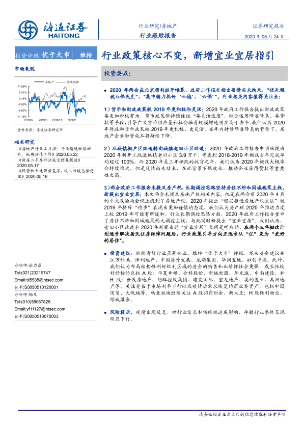 【海通证券】【20200524】房地产行业跟踪报告:行业政策核心不变,新增宜业宜居指引-6页