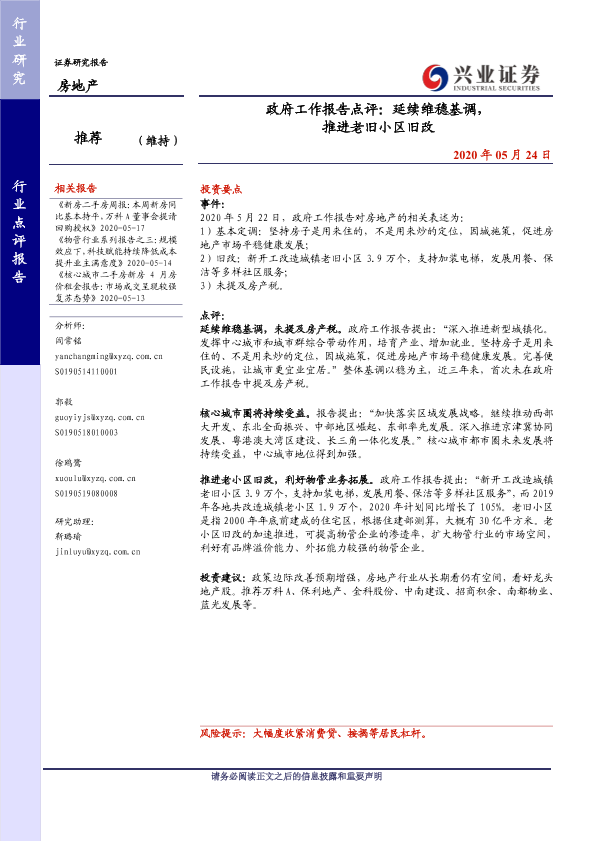 【兴业证券】【20200524】政府工作报告点评:延续维稳基调,推进老旧小区旧改-2页