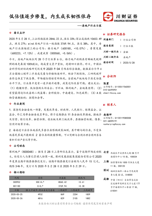 【川财证券】【20200528】房地产行业日报:低估值逐步修复,内生成长韧性依存-3页