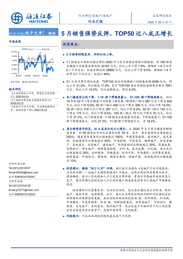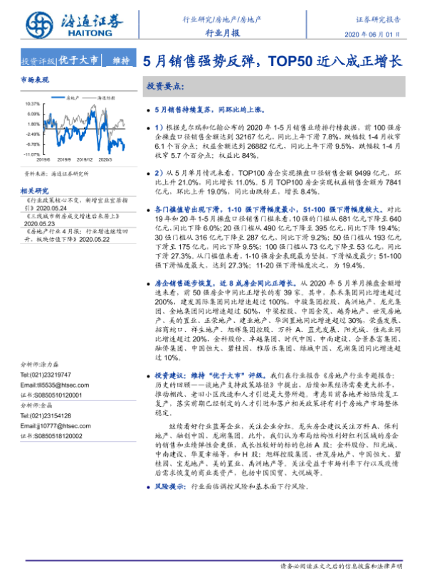 【海通证券】【20200601】5月销售强势反弹,TOP50近八成正增长-10页