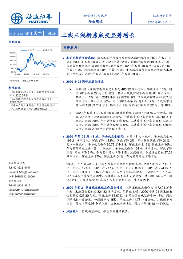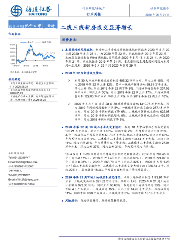 【海通证券】【20200601】房地产行业周报:二线三线新房成交显著增长-6页