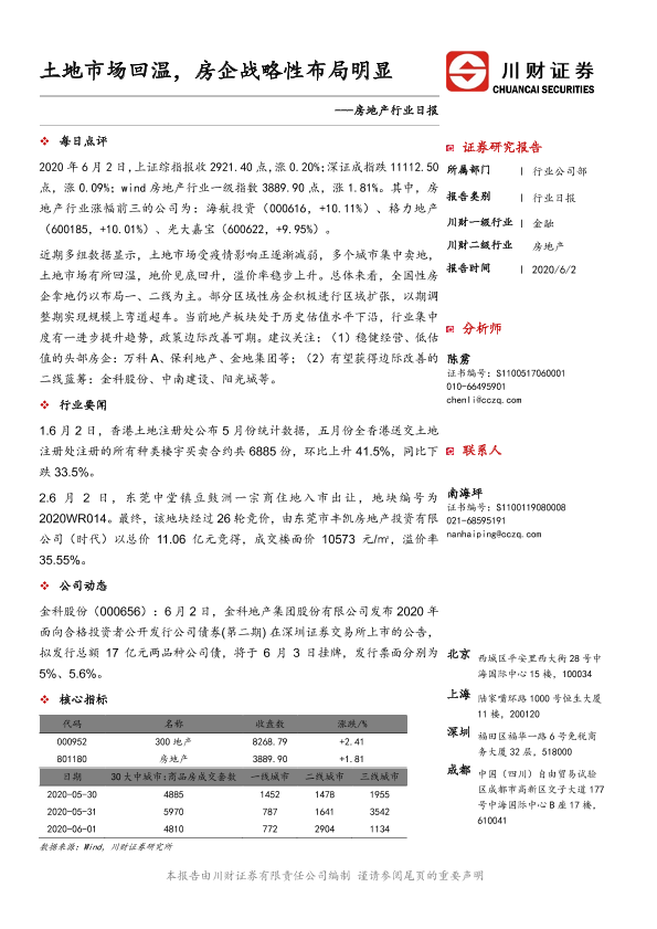 【川财证券】【20200602】房地产行业日报:土地市场回温,房企战略性布局明显-3页