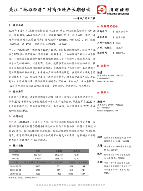 【川财证券】【20200604】关注“地摊经济”对商业地产长期影响-3页