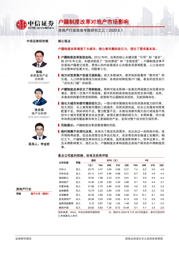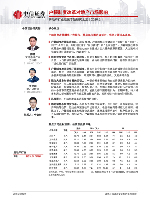 【中信证券】【20200601】房地产行业政策专题研究之三:户籍制度改革对地产市场影响-8页