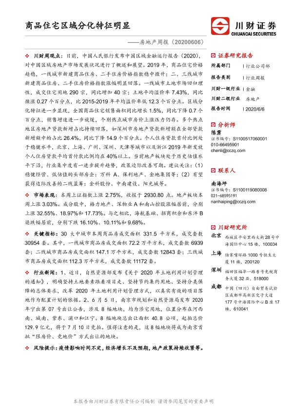 【川财证券】【20200606】商品住宅区域分化特征明显-10页