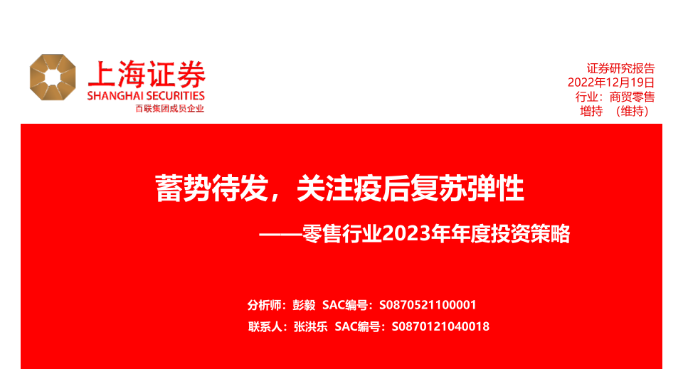 【上海证券】【20221219】零售行业2023年年度投资策略:蓄势待发,关注疫后复苏弹性-46页