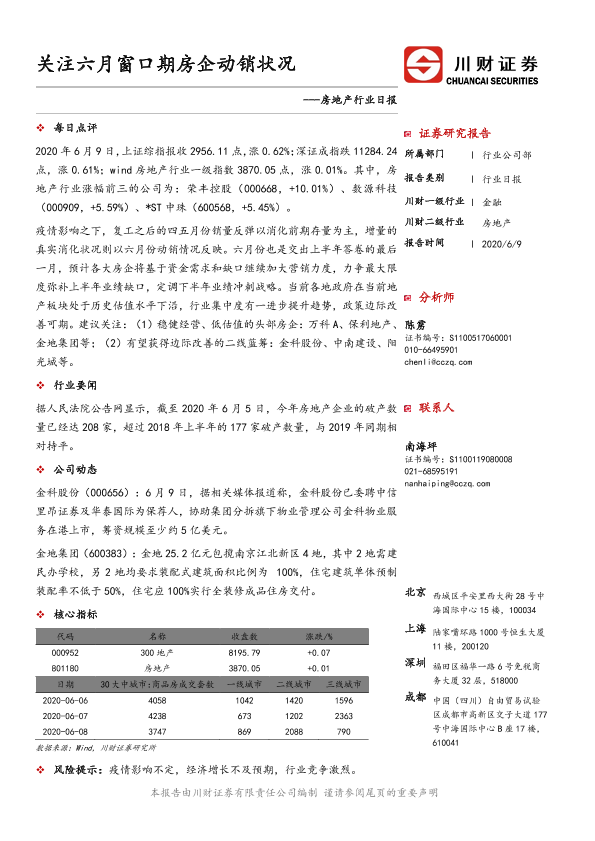 【川财证券】【20200609】关注六月窗口期房企动销状况-3页