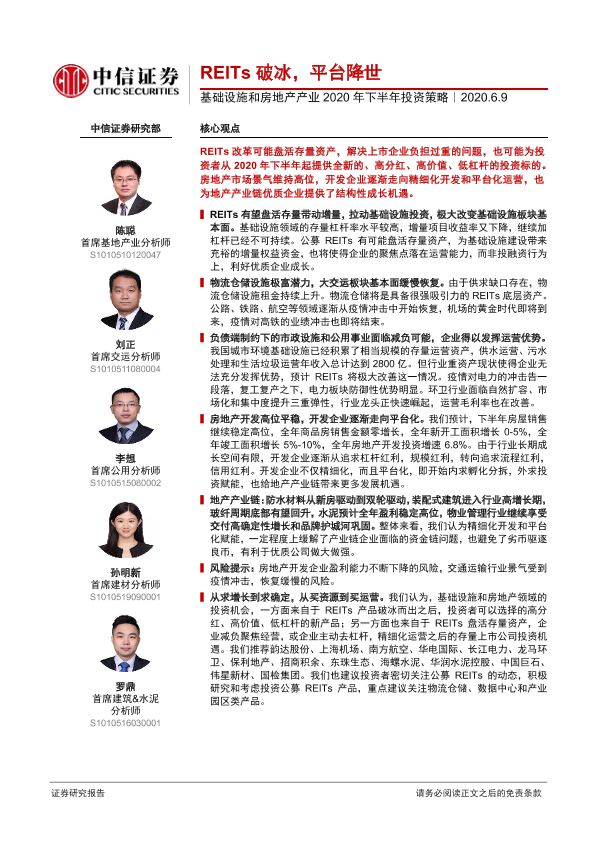 【中信证券】【20200609】基础设施和房地产产业2020年下半年投资策略-84页