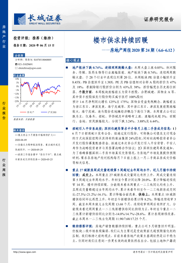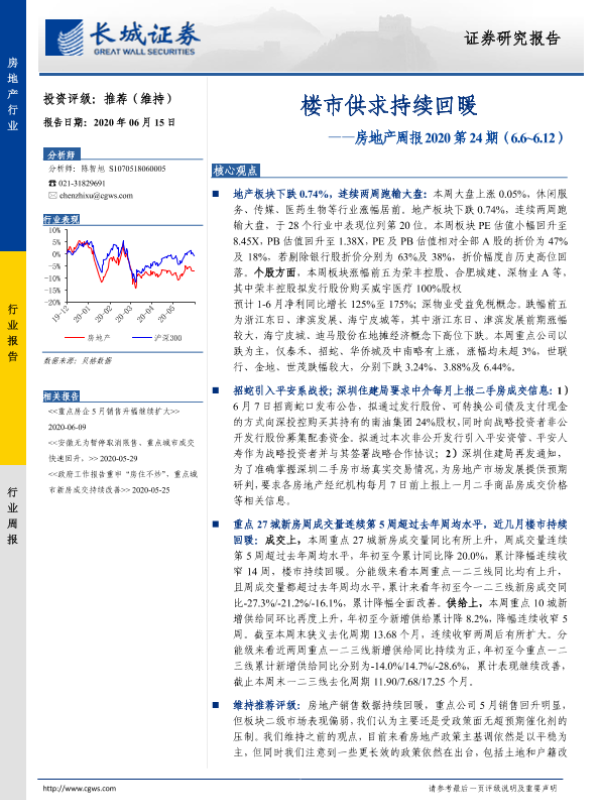 【长城证券】【20200615】楼市供求持续回暖-15页