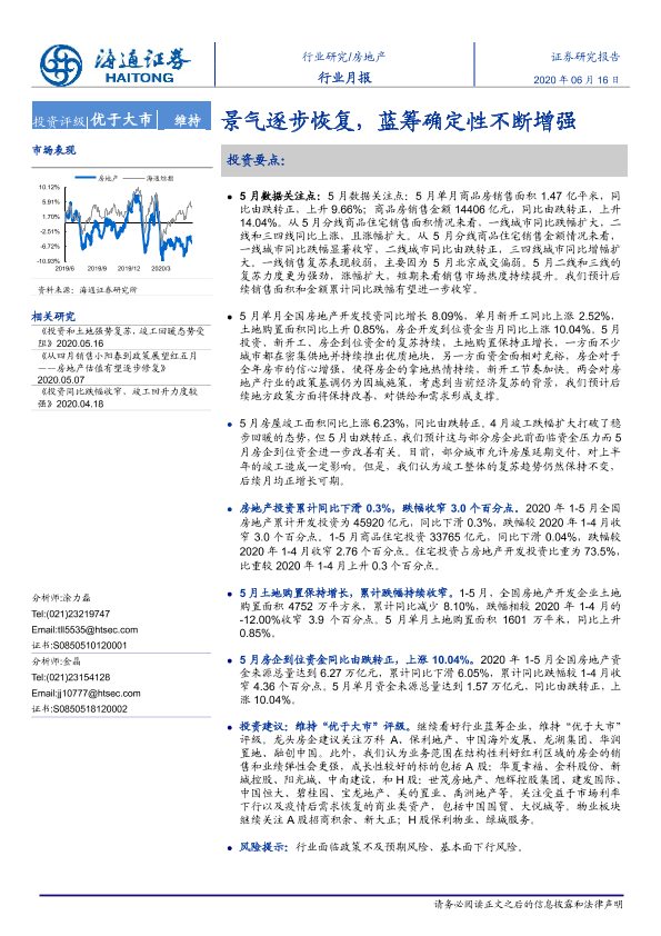 【海通证券】【20200616】房地产行业月报:景气逐步恢复,蓝筹确定性不断增强-12页