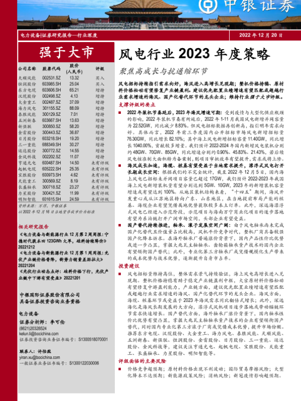 【中银证券】【20221220】风电行业2023年度策略:聚焦高成长与抗通缩环节-53页