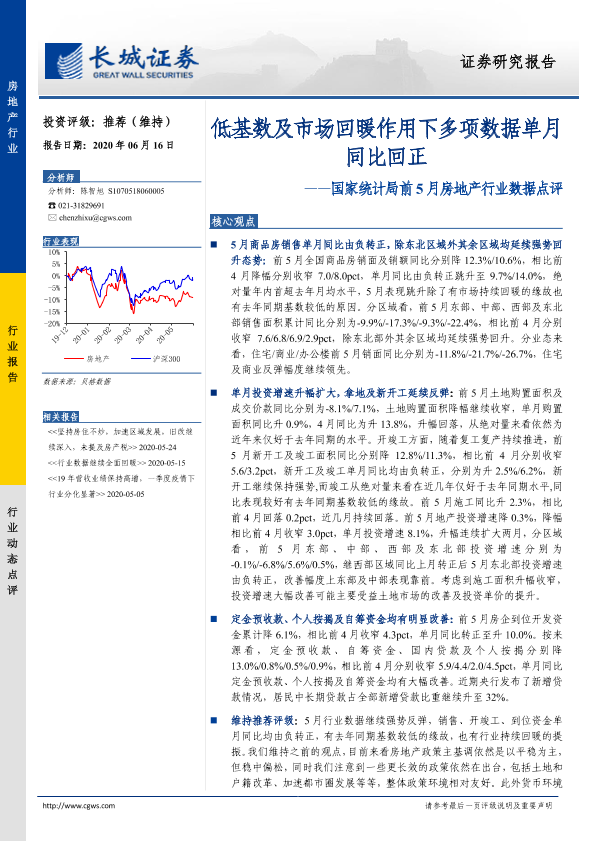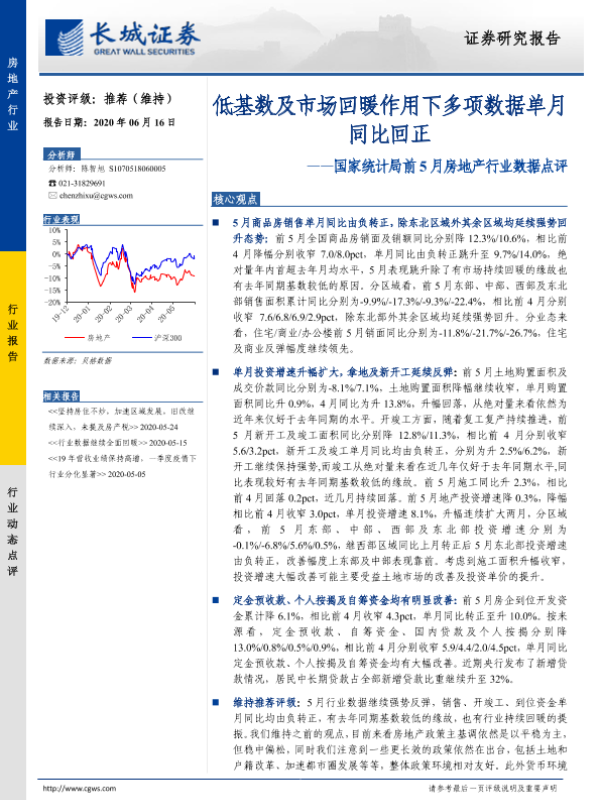 【长城证券】【20200616】国家统计局前5月房地产行业数据点评:低基数及市场回暖作用下多项数据单月同比回正-9页