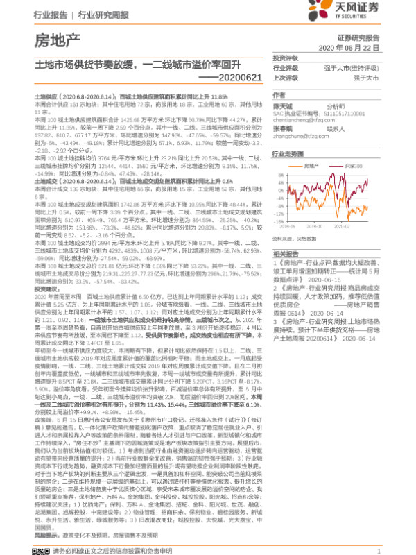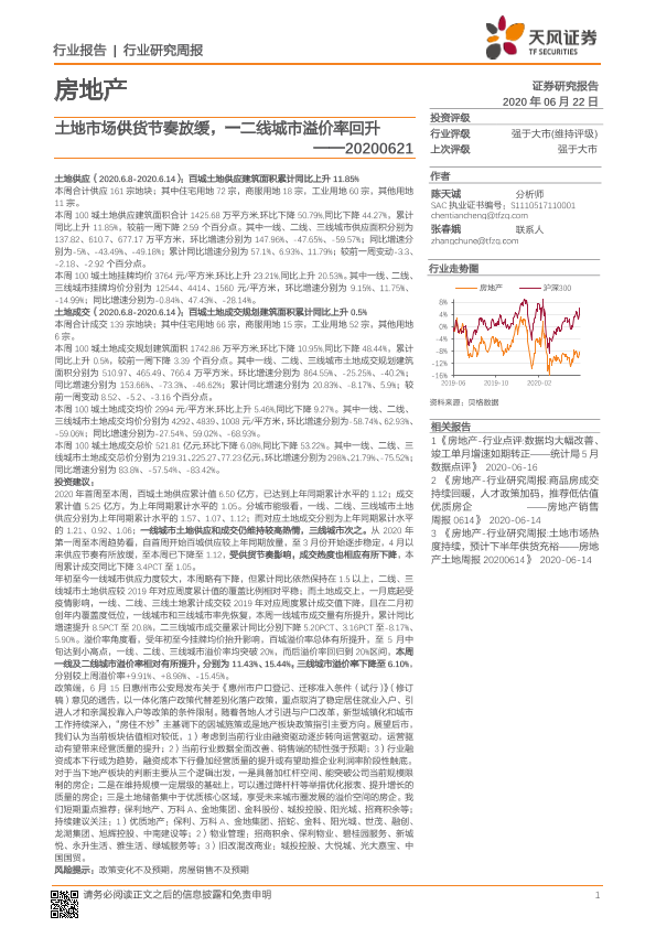 【天风证券】【20200622】土地市场供货节奏放缓,一二线城市溢价率回升-8页