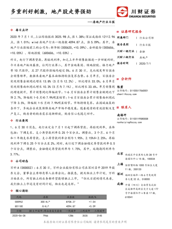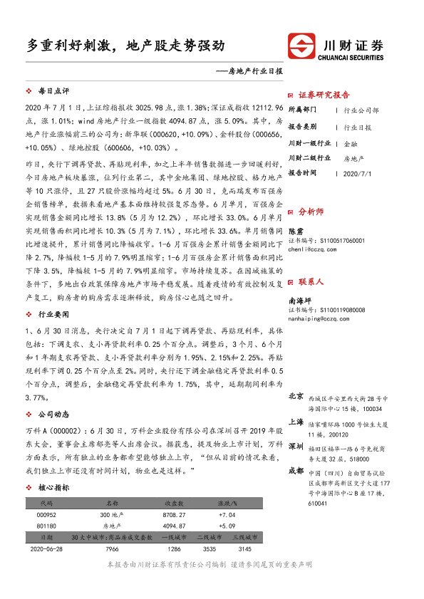 【川财证券】【20200701】多重利好刺激,地产股走势强劲-3页