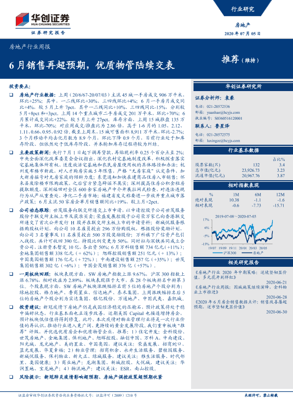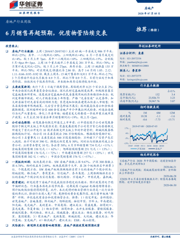 【华创证券】【20200705】6月销售再超预期,优质物管陆续交表-22页