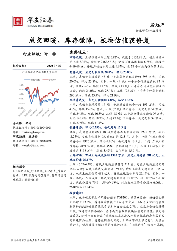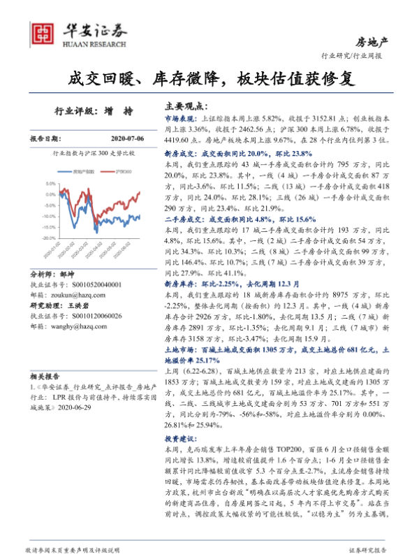 【华安证券】【20200706】房地产行业周报:成交回暖、库存微降,板块估值获修复-16页