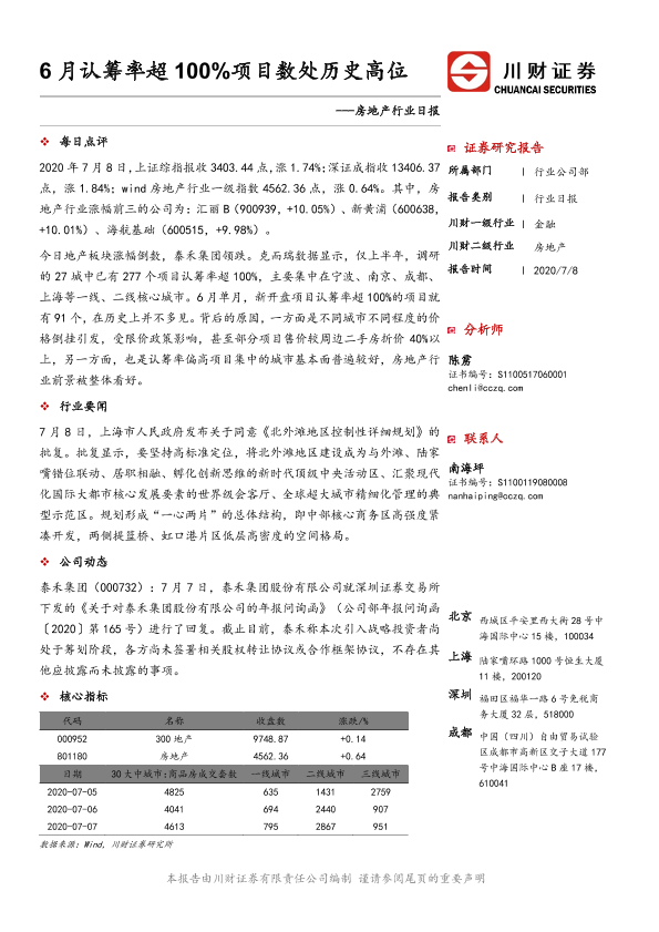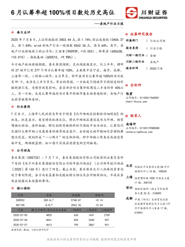 【川财证券】【20200708】6月认筹率超100%项目数处历史高位-3页