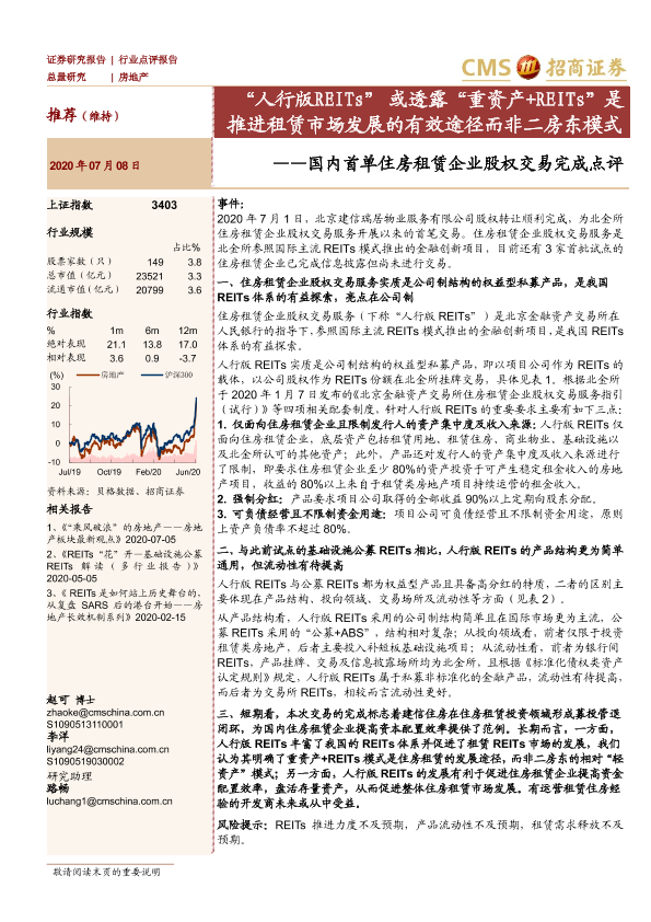 【海通证券】【20200708】国内首单住房租赁企业股权交易完成点评:“人行版REITs”或透露“重资产+REITs”是推进租赁市场发展的有效途径而非二房东模式-4页