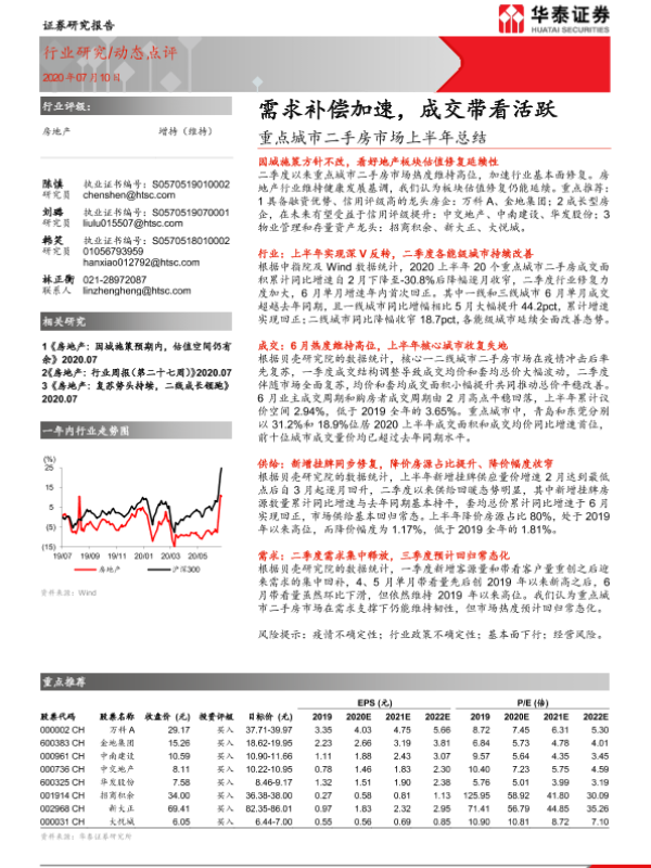 【华泰证券】【20200710】重点城市二手房市场上半年总结:需求补偿加速,成交带看活跃-13页
