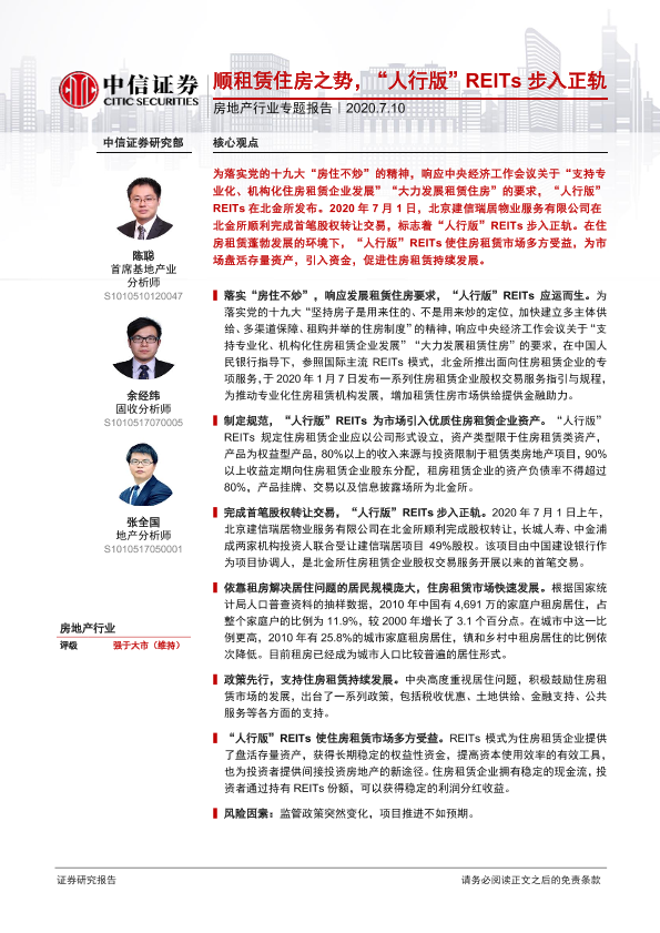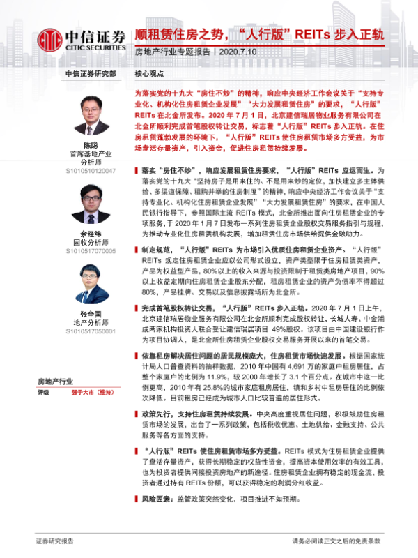 【中信证券】【20200710】顺租赁住房之势,‘人行版’REITs步入正轨-8页