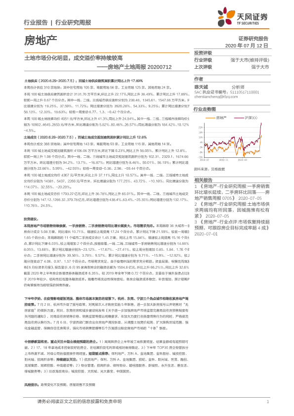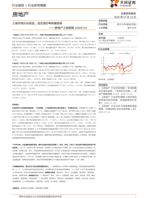 【天风证券】【20200712】土地市场分化明显,成交溢价率持续较高-9页