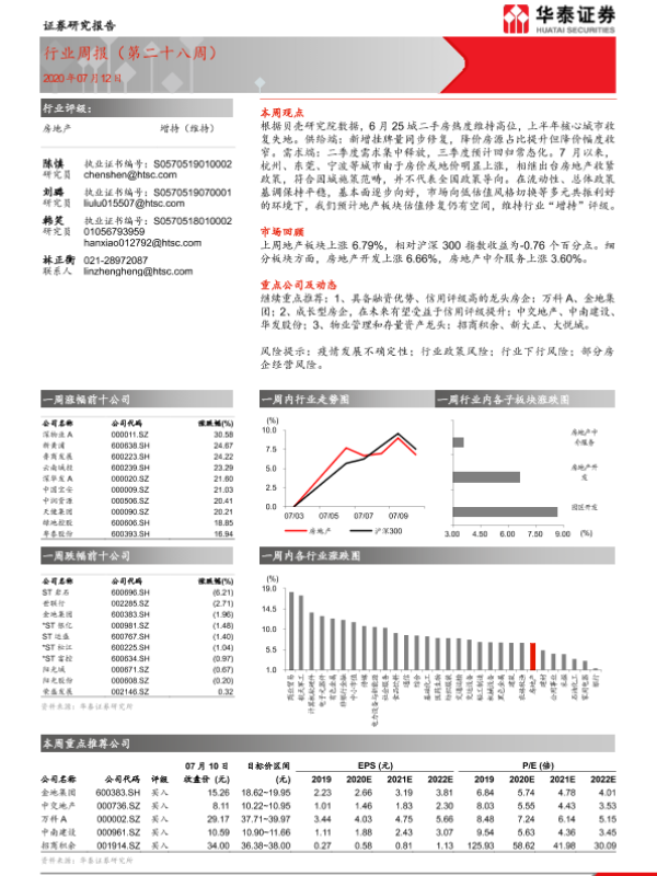 【华泰证券】【20200712】房地产行业周报(第二十八周)-14页