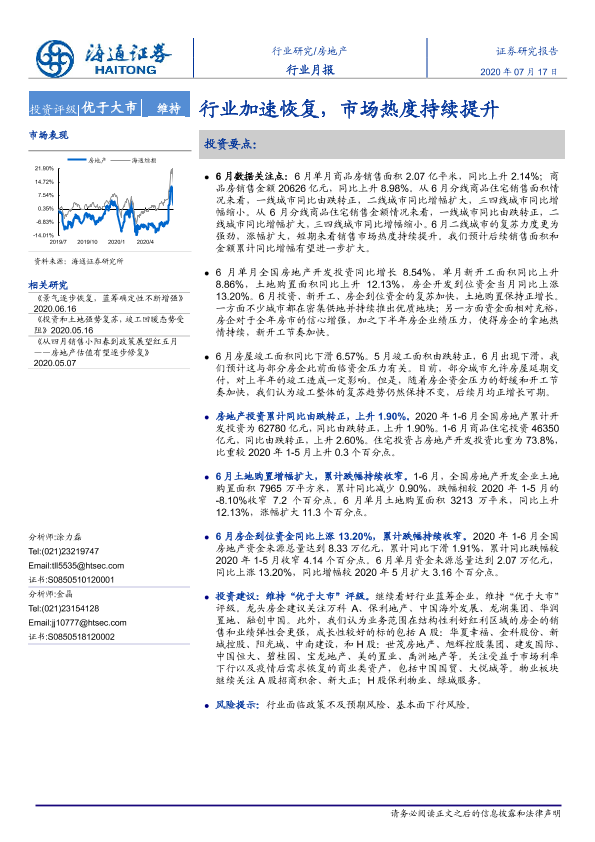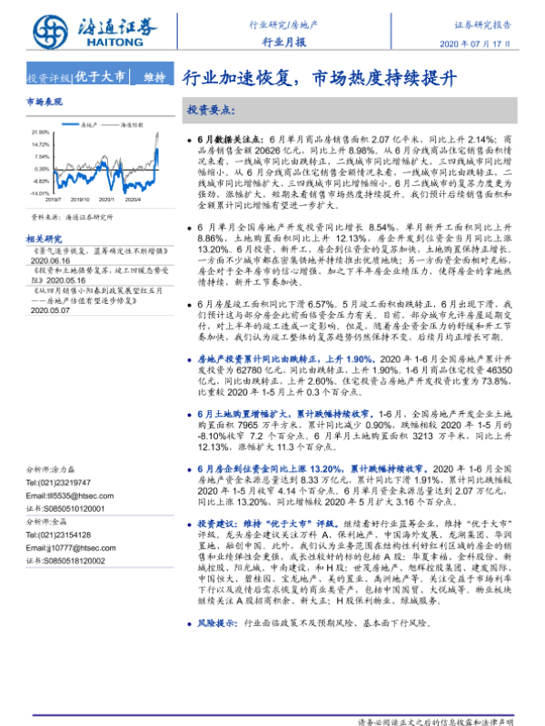 【海通证券】【20200717】房地产行业月报:行业加速恢复,市场热度持续提升-12页
