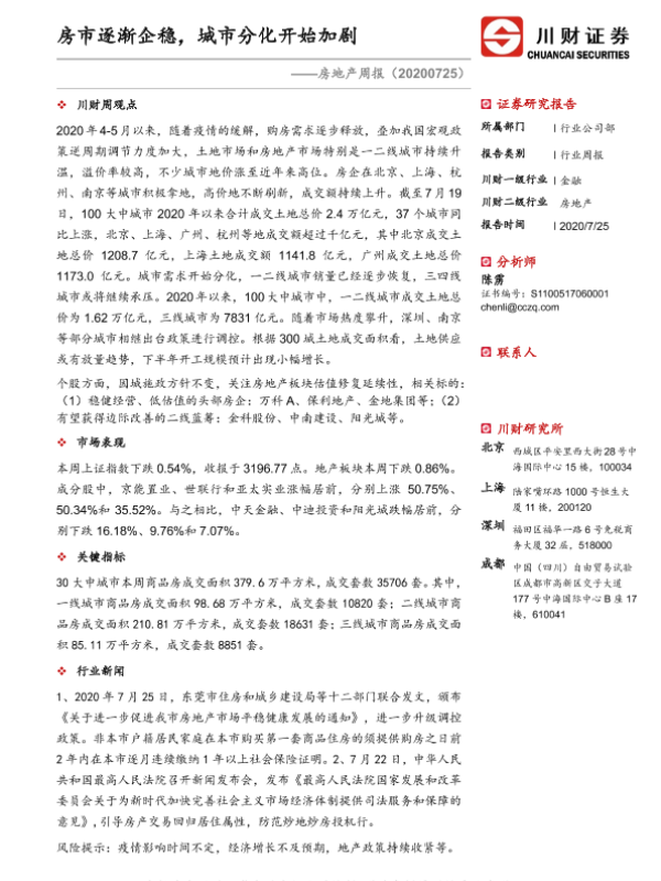 【川财证券】【20200725】房市逐渐企稳,城市分化开始加剧-11页
