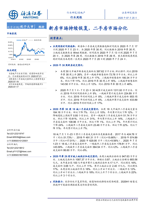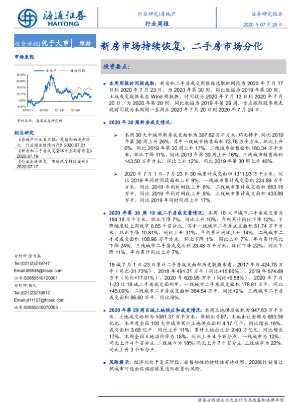 【海通证券】【20200725】房地产行业周报:新房市场持续恢复,二手房市场分化-6页