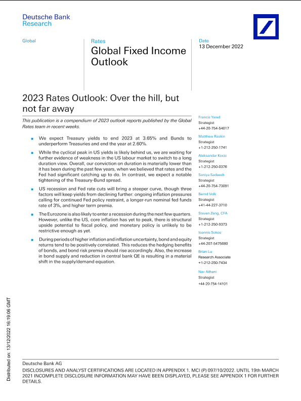 【德意志银行研究部】【20221213】2023年利率展望:越过山丘,但并不遥远-81页