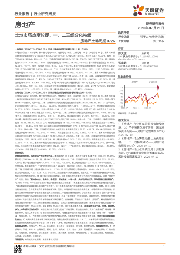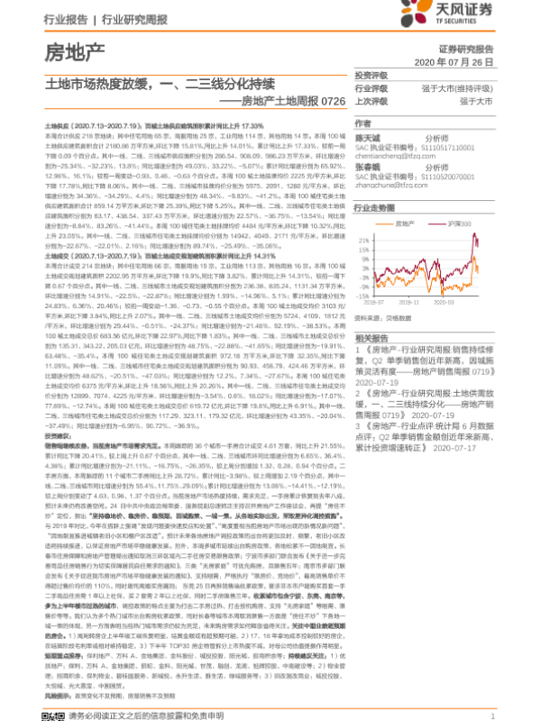 【天风证券】【20200726】土地市场热度放缓,一、二三线分化持续-11页
