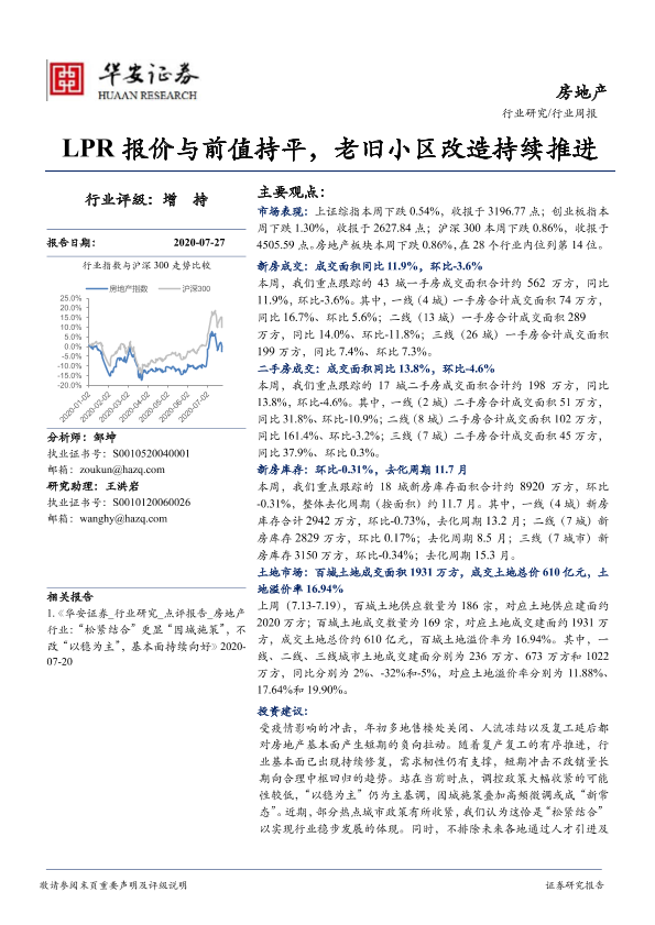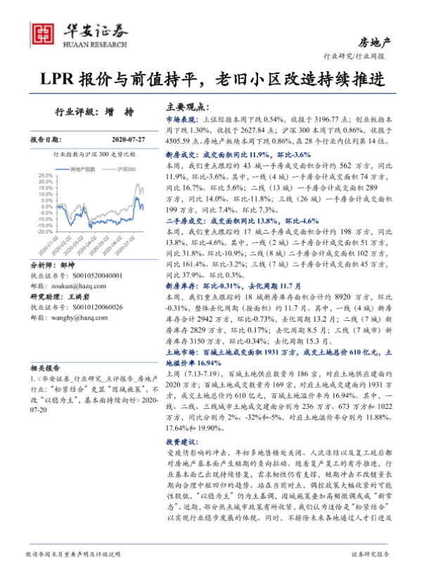 【华安证券】【20200727】房地产行业周报:LPR报价与前值持平,老旧小区改造持续推进-17页