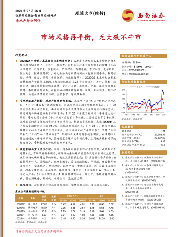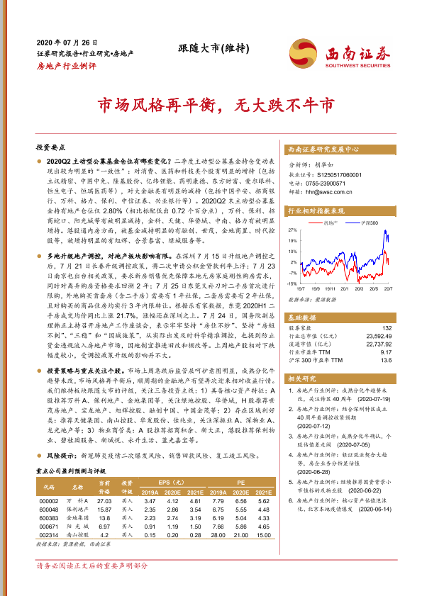 【西南证券】【20200726】房地产行业例评:市场风格再平衡,无大跌不牛市-23页