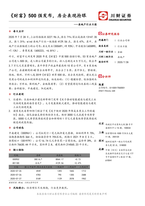 【川财证券】【20200728】房地产行业日报:《财富》500强发布,房企表现抢眼-3页