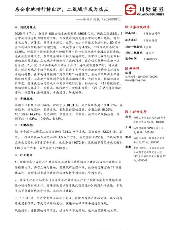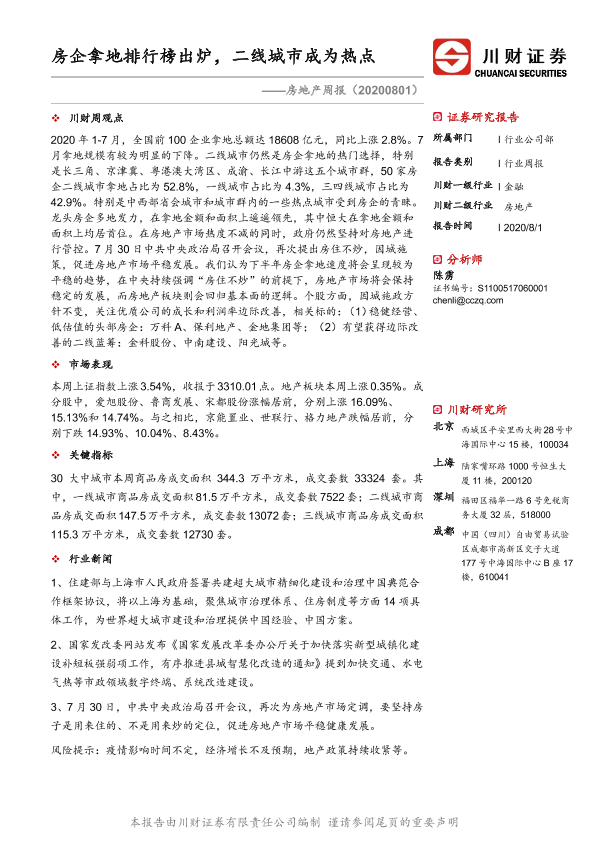 【川财证券】【20200801】房企拿地排行榜出炉,二线城市成为热点-10页
