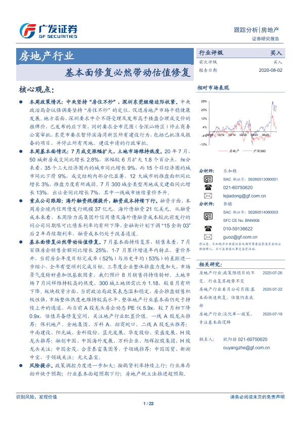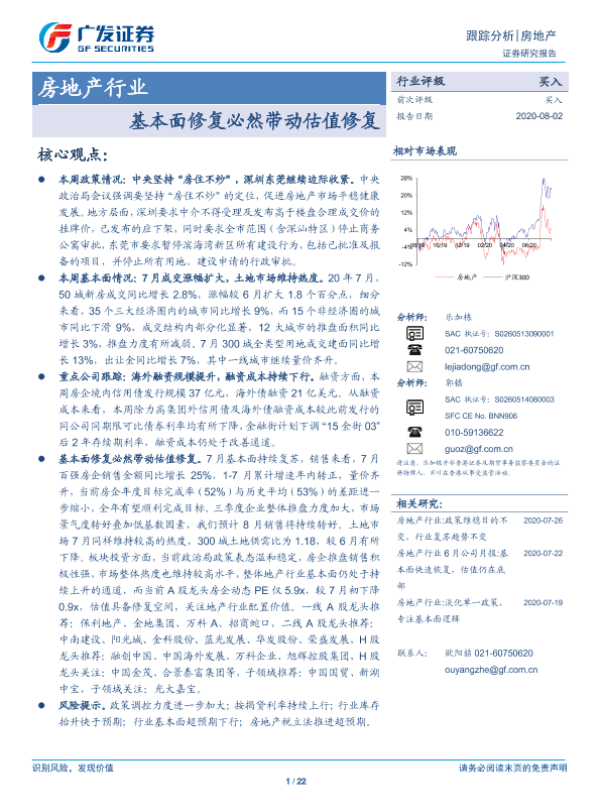 【广发证券】【20200802】房地产行业跟踪分析:基本面修复必然带动估值修复-22页