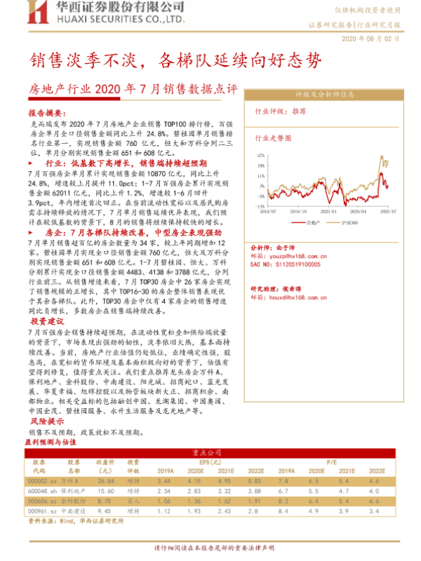 【华西证券】【20200802】2020年7月销售数据点评:销售淡季不淡,各梯队延续向好态势-10页