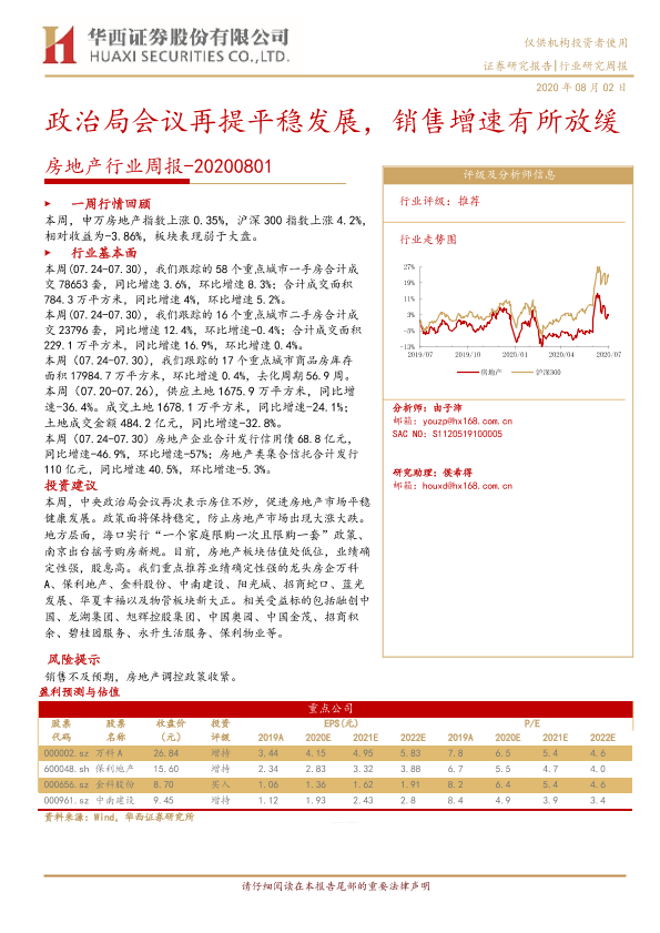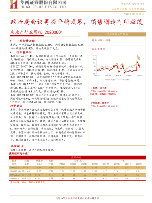 【华西证券】【20200802】房地产行业周报:政治局会议再提平稳发展,销售增速有所放缓-26页