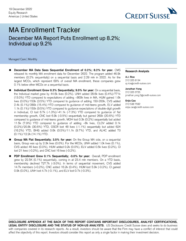 【Credit Suisse】【20221219】MA Enrollment Tracker-10页