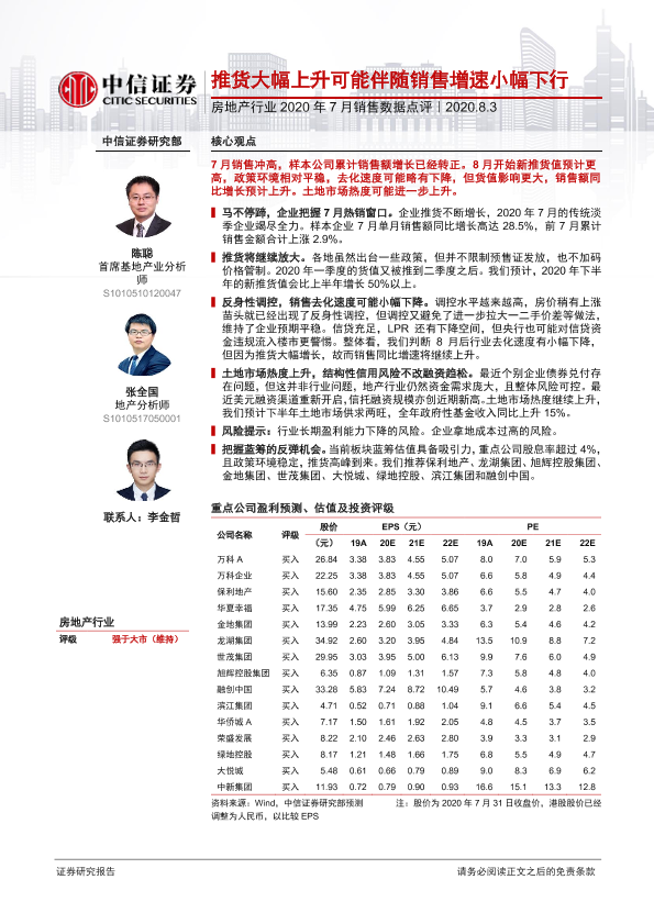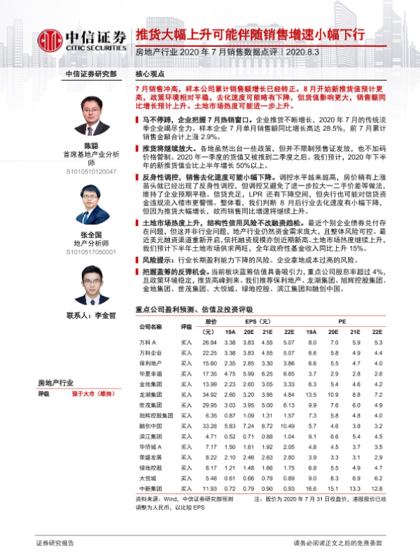 【中信证券】【20200803】2020年7月销售数据点评:推货大幅上升可能伴随销售增速小幅下行-15页