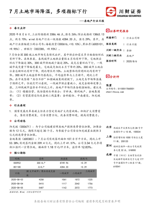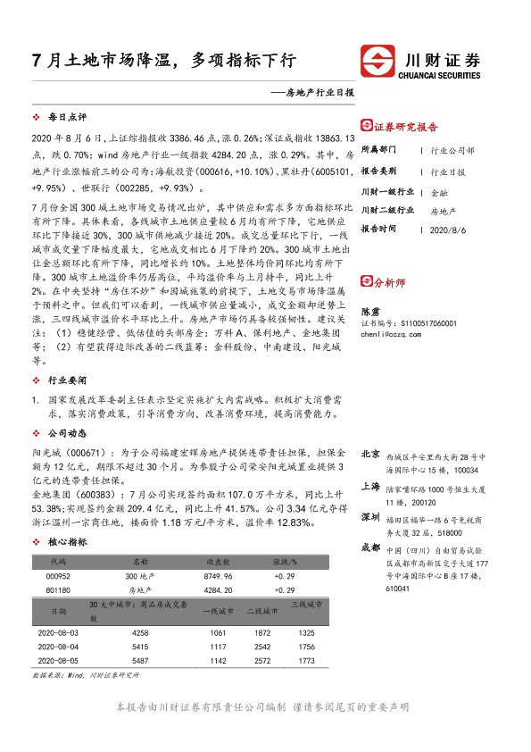 【川财证券】【20200806】7月土地市场降温,多项指标下行-3页
