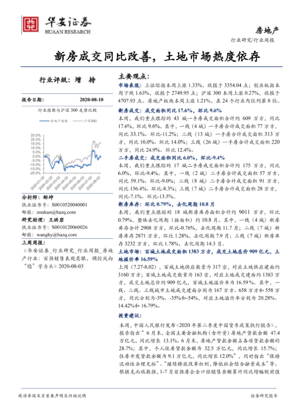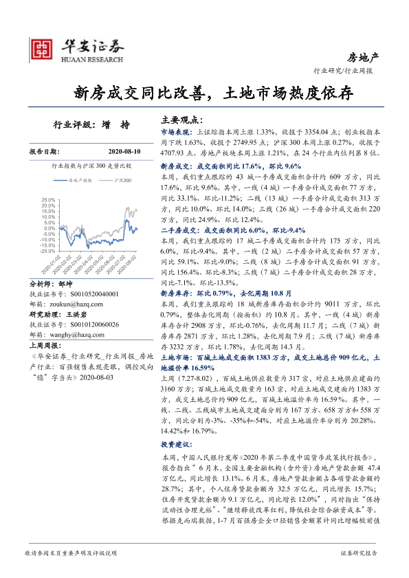 【华安证券】【20200810】房地产行业周报:新房成交同比改善,土地市场热度依存-16页